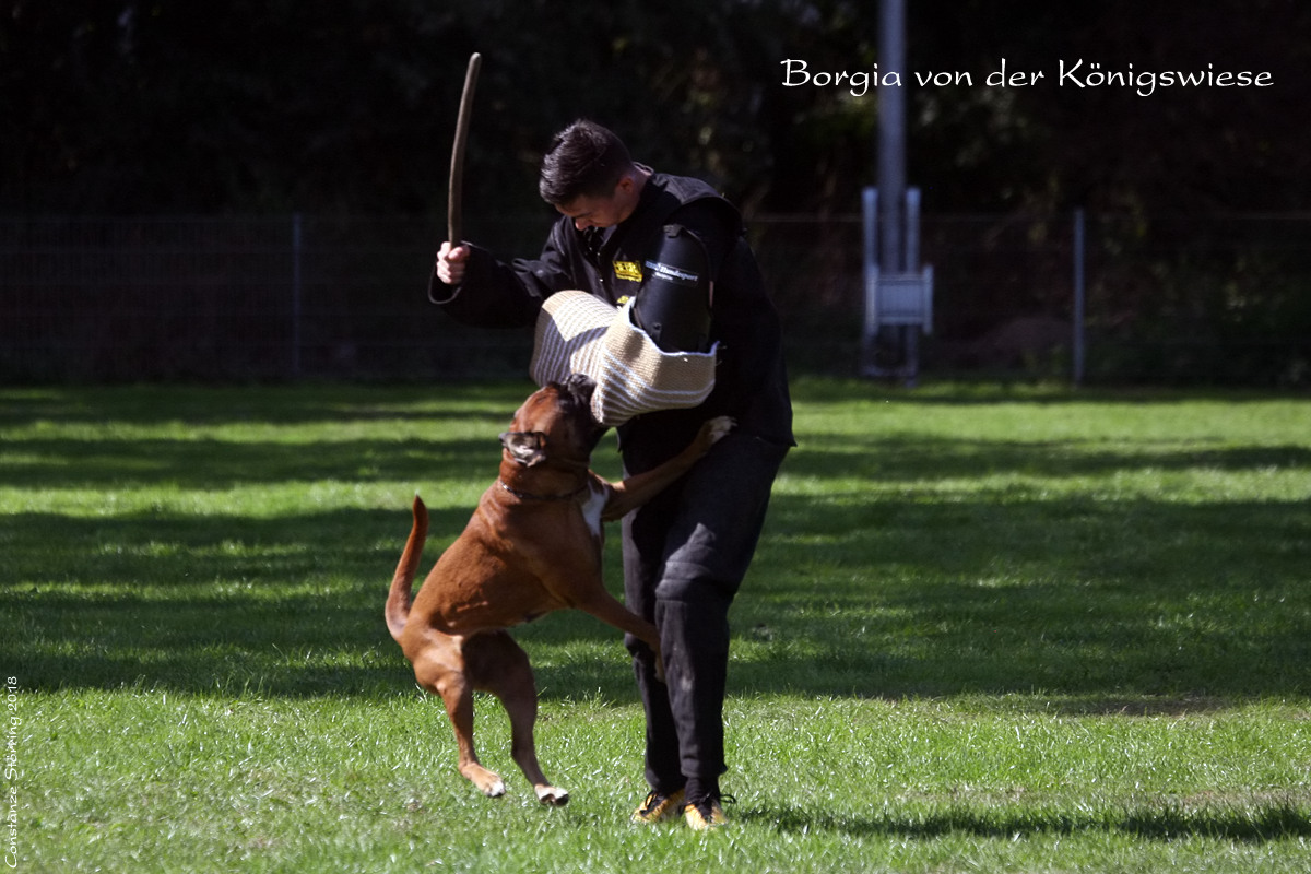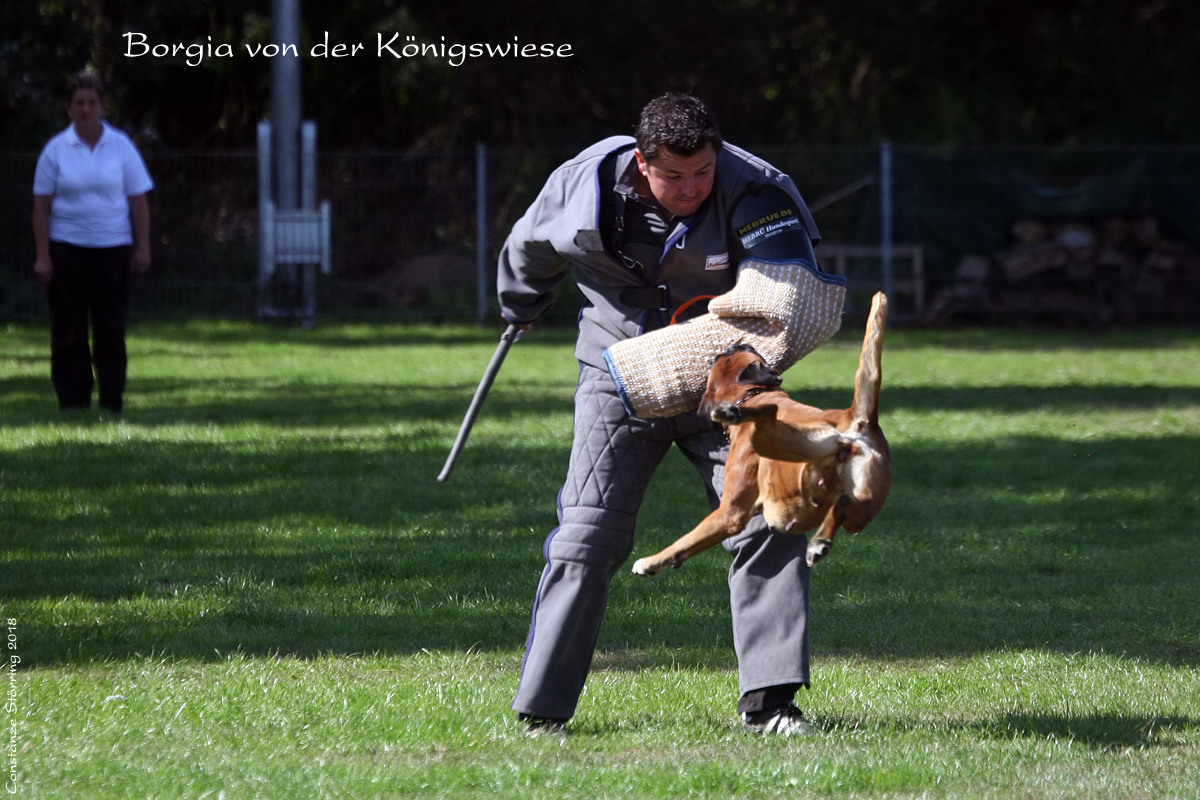 Ein dickes Dankeschön an dieser Stelle an Nico Pisdzior (Gruppe Jülich) und Dagmar Lappe (Gruppe Kempen), die ihre Hunde als Probehunde für den Schutzdienst zur Verfügung gestellt haben. Nico führte seine Hündin darüber hinaus auch noch in der Unterordnung als Partnerhund. Alles nicht selbstverständlich und verdient deshalb, auch einmal erwähnt zu werden.